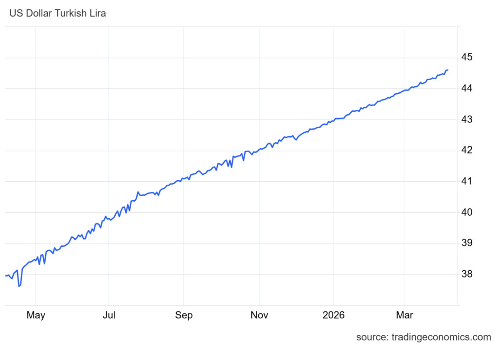 Kur tarafında ise dikkat çeken gelişmeler yaşanıyor. Türk lirası mart ayında dolar karşısında 44,5 seviyesine gerileyerek tarihi düşük seviyelerini gördü. Jeopolitik risklerin artmasıyla birlikte yatırımcıların gelişmekte olan ülke para birimlerinden çıkarak dolara yönelmesi bu düşüşte etkili oldu.