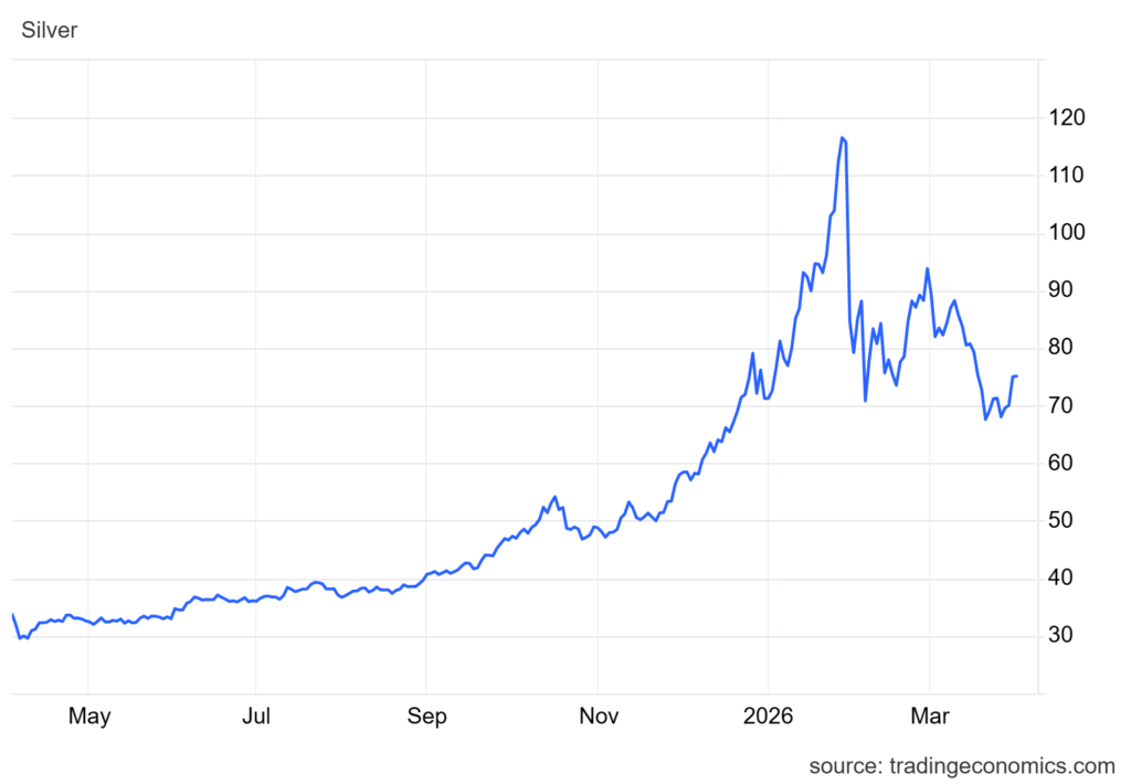 Gümüş fiyatları ise düşüş eğilimini sürdürerek Nisan ayının ilk işlem gününde 74 dolar seviyesine geriledi. Mart ayında yüzde 20’yi aşan kayıp yaşayan gümüş, bu performansıyla Eylül 2011’den bu yana en sert aylık düşüşünü kaydetti. Fiyatların Ocak ayındaki zirve seviyelerin yaklaşık yüzde 40 altında olması, piyasadaki satış baskısının boyutunu ortaya koyuyor.