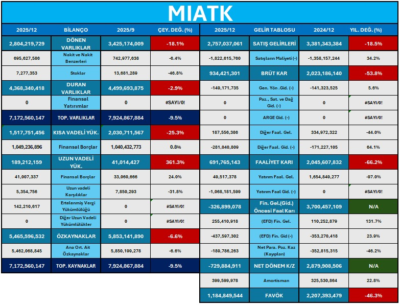 Mia Teknoloji A.Ş. (MIATK), Türkiye merkezli bir bilişim ve yazılım şirketi olup; sağlık bilişimi, savunma sanayii, enerji, ulaşım ve akıllı şehir yönetimi gibi stratejik alanlarda ileri teknoloji çözümleri sunuyor. Ar-Ge odaklı yapısı ve inovatif projeleriyle Borsa İstanbul teknoloji endeksinde (BIST Teknoloji) dikkat çeken şirket, geniş bir sektörel yelpazeye hitap eden yazılım ekosistemiyle tanıyor. Ancak, teknoloji sektöründeki büyüme potansiyeline rağmen, şirketin son dönemde açıkladığı mali veriler operasyonel ve finansal yapısındaki riskleri gün yüzüne çıkardı.