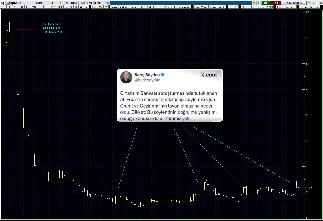 7 Kasım 2025 yılında gözaltına alınması ile birlikte sahibi olduğu şirket hisse senetleri önemli değer kaybeden Ali Ercan ile ilgili tahliye dedikoduları hisselerdeki beklentiye dönüştü.