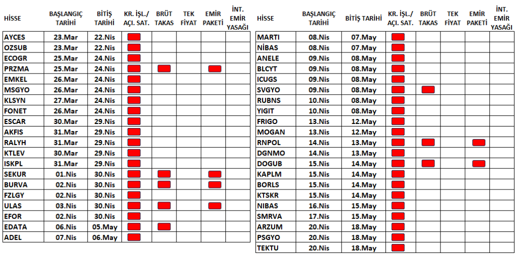 MANAS ve YAPRK paylarına uygulanan tedbirler 17 Nisan tarihi ile sona erdi.