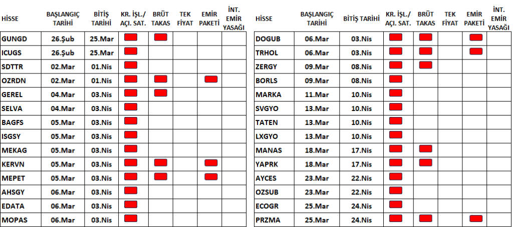 - ECOGR paylarına açığa satış – brüt takas ve PRZMA paylarına ise emir paketi tedbiri uygulanacak.
