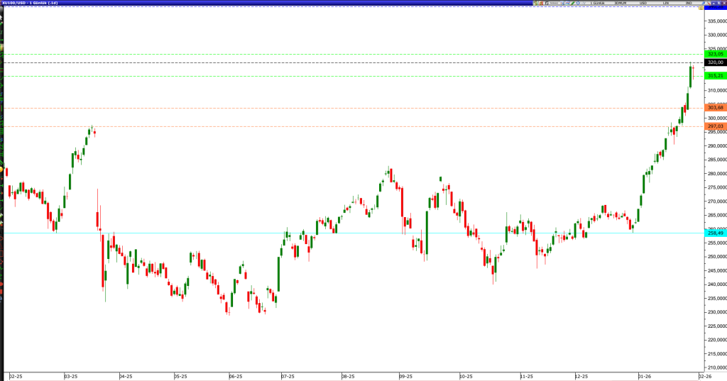 2026 yılına ışık hızı ile giren Borsa İstanbul 100 endeksi (XU100) bir ay içerisinde 258 dolar seviyesinden 320 dolar seviyesine kadar yükselerek yatırımcısına dolar bazlı %24 kazanç imkanı sundu