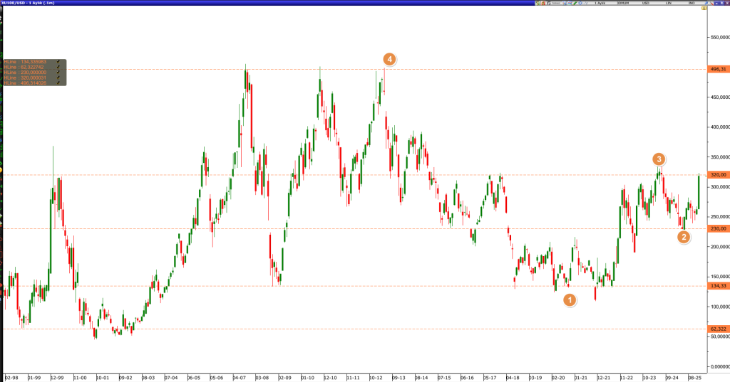 Bunlara istisna olarak 2024 Mayıs-Temmuz döneminde 340 dolar seviyesine kadar endeksin çıktığı görülmüştür.