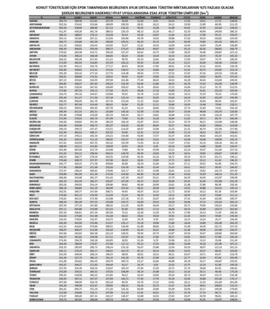 Öte yandan il bazlı farklı limitler, aynı tüketimi yapan iki farklı şehirdeki abonenin farklı faturalarla karşılaşmasına neden olabilecek.