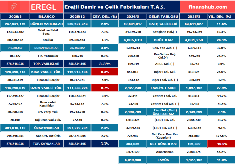 - Operasyonel Başarı (FAVÖK): FAVÖK %41 artarak 5,8 milyar TL’ye ulaşmış. Bu, Erdemir’in ana faaliyetlerinde verimliliğin ciddi şekilde arttığının en net kanıtı.