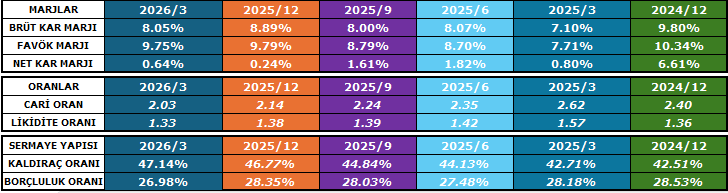 - FAVÖK Marjı: %7,71’den %9,75’e çıkarak operasyonel verimliliği teyit etmiş.