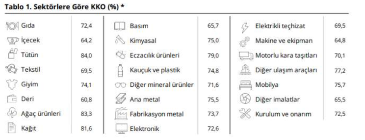 Mevsimsel etkilerden arındırılmamış kapasite kullanım oranı (KKO) ise, şubatta önceki aya göre 0,6 puan azalışla yüzde 73,5 seviyesinde gerçekleşti.
