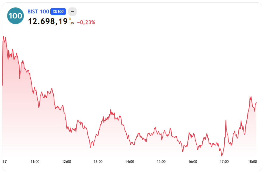 Geçtiğimiz haftanın son işlem gününe (Cuma) 75,92 puanlık yükselişle başlayan BIST 100 endeksi, 12.825,01 seviyesini test ettikten sonra artan jeopolitik risklerin baskısıyla 12.601,60 puana kadar geriledi. Seansın sonunu ise %0,23 oranındaki düşüşle 12.698,19 puandan noktaladı.