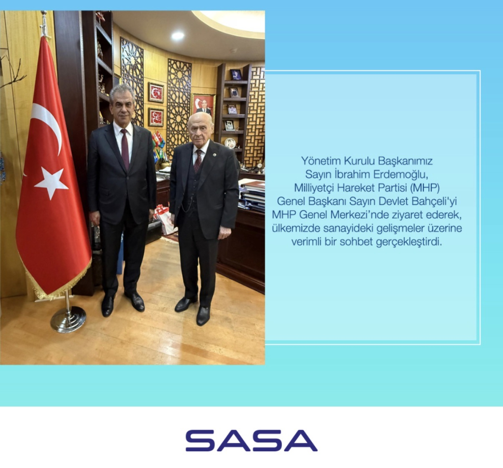 SASA Polyester Yönetim Kurulu Başkanı İbrahim Erdemoğlu, Milliyetçi Hareket Partisi (MHP) Genel Başkanı Devlet Bahçeli’yi MHP Genel Merkezi’nde ziyaret etti.