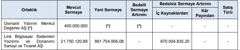 2- Link Bilgisayar Sistemleri Yazılımı ve Donanımı Sanayi ve Ticaret AŞ’nin sermayesinin tamamı iç kaynaklardan karşılanmak üzere 21.750.120,88 TL’den %4000 artırılarak 891.754.956, 08 TL’ye yükseltilmesi onaylandı