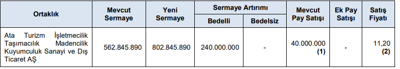 1) Mevcut ortak Tan Turizm Havayolu Taşımacılık Bilgisayar Elektronik Sanayi ve Dış Ticaret AŞ’nin sahip olduğu 40.000.000 TL nominal değerli B grubu payların satışı gerçekleştirilecektir.