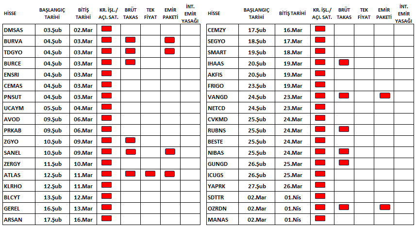VBTS Kapsamındaki Tüm Şirketler ve Tedbirlerin Bitiş Tarihleri