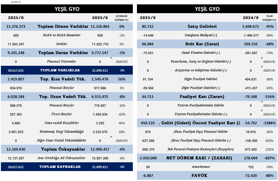 Sonuç olarak Teknikçi bir hafta önce sizlere “Yeşil GYO alın tekniği 10 numara” derken, Temelci “2025/9 aylık çok kötü, önümüzdeki 1-2 dönemi daha görelim” diyecekti.